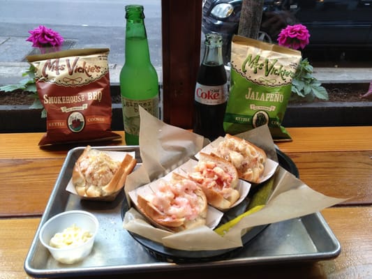 Taste of Maine. 1/2 lobster roll. 1/2 crab roll. 1/2 shrimp roll. two crab claws.